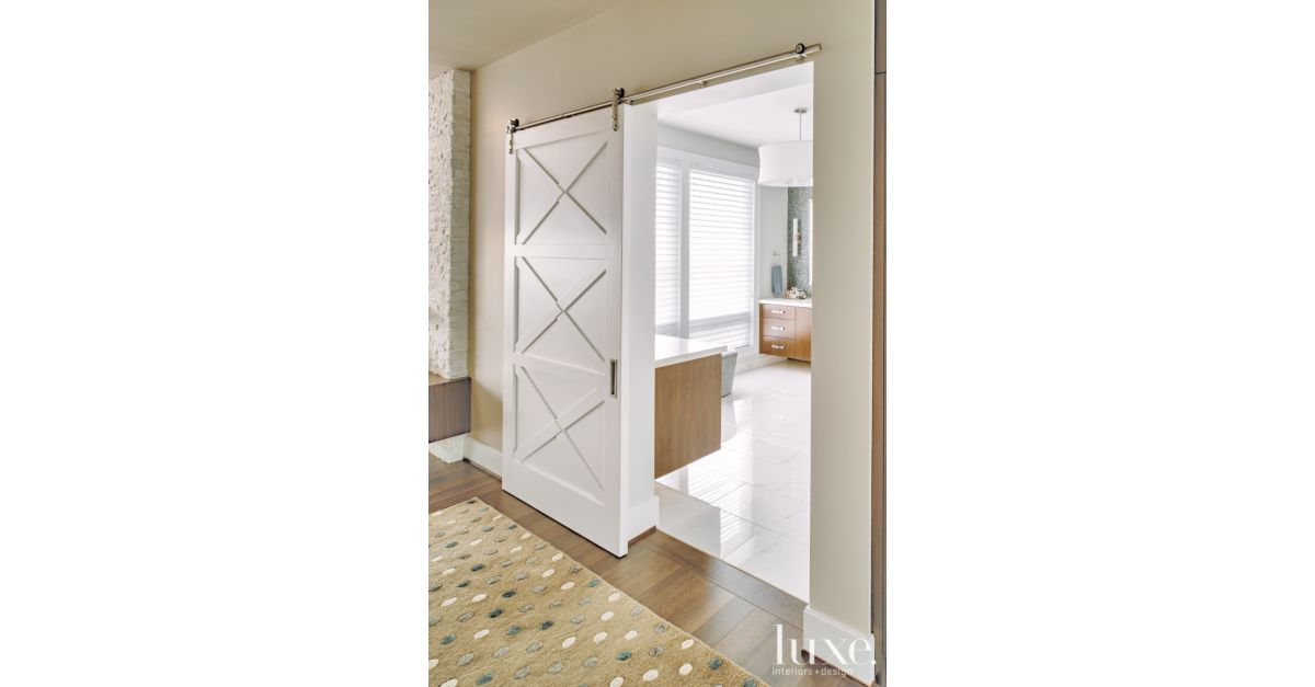Modern White Master Bath Door - Luxe Interiors + Design from sandowmedia.scene7.com Better is a barn door that has a weathered finish to it. This can be especially functional in a master bath that is incorporated into a master suite design. Here are some of the best bathroom door ideas.